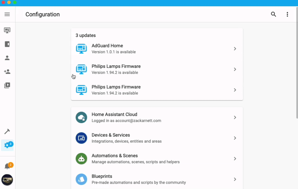 You can now upgrade your devices from inside of Home Assistant just as you would for Home Assistant Releases. You will also notice the number of updates pending in the sidebar by the indicator badge on your configuration cog icon. It's now possible to read the release notes, skip or even install the upgrade to your device in one convenient place.