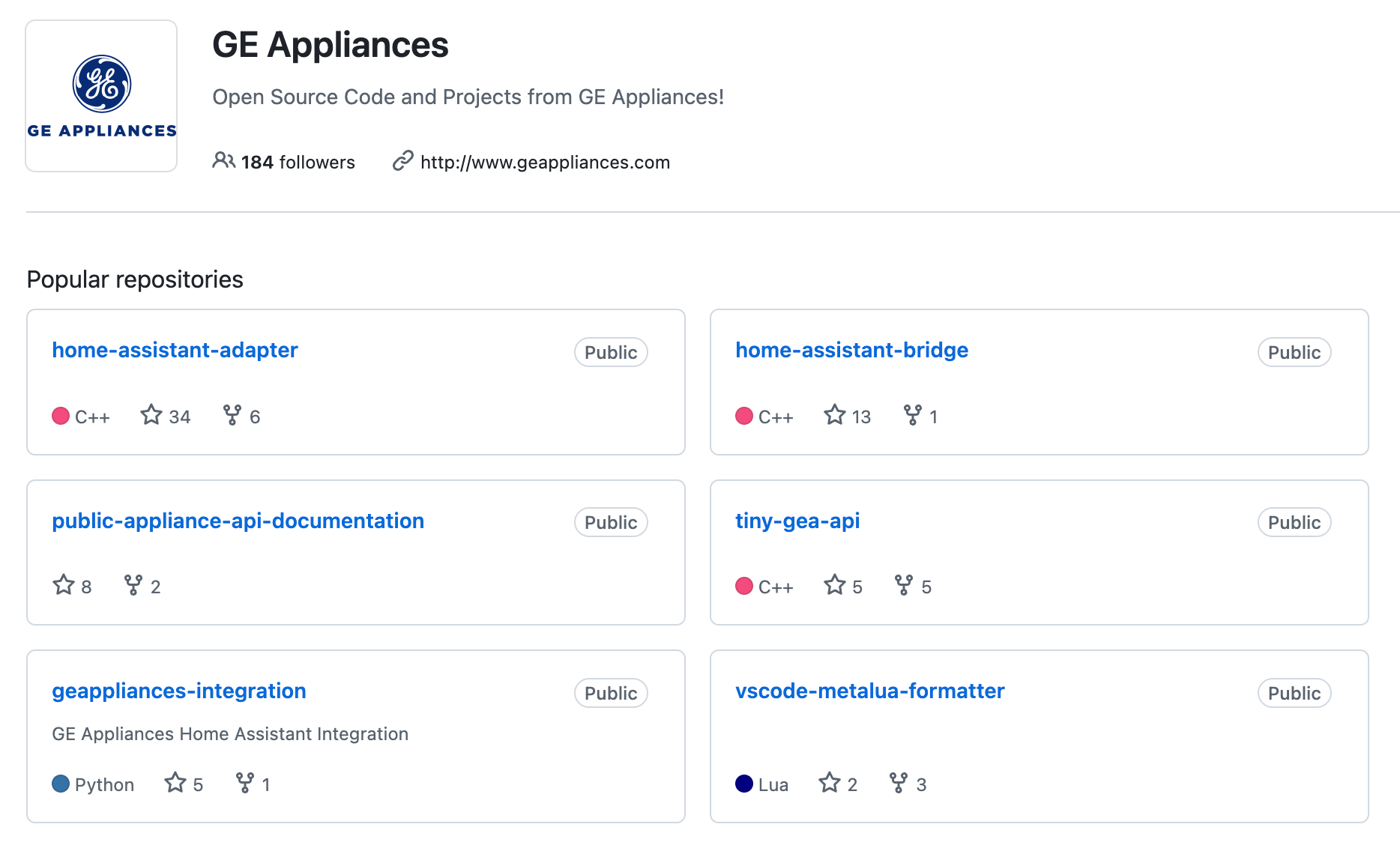 Even companies can be part of the community. We recently spotted the GE Appliances GitHub page (yes, a 120 year old appliance manufacturer can have a GitHub page) that they’re working on connecting appliances to Home Assistant via a local API 😎.