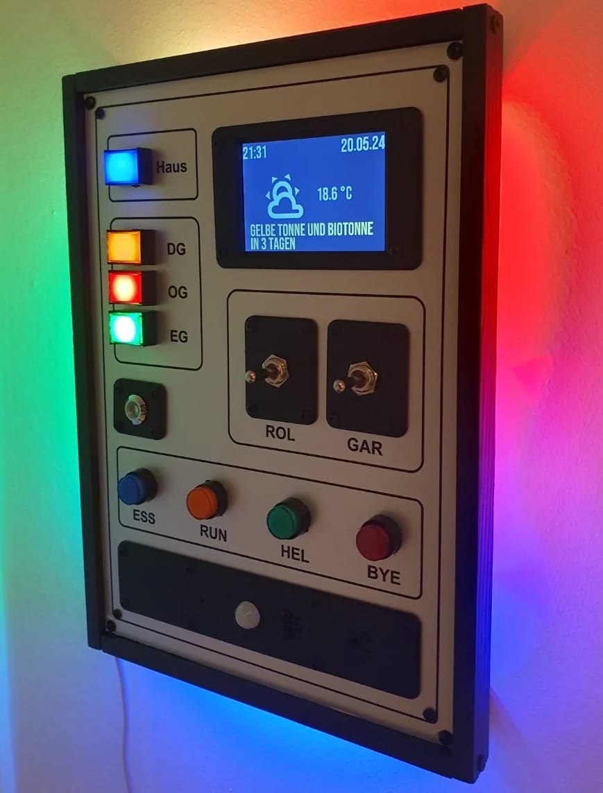 Here is a super cool physical dashboard by u/aLurchi, it has illuminated buttons, sensors, and even a screen... and of course it's powered by ESPHome.
