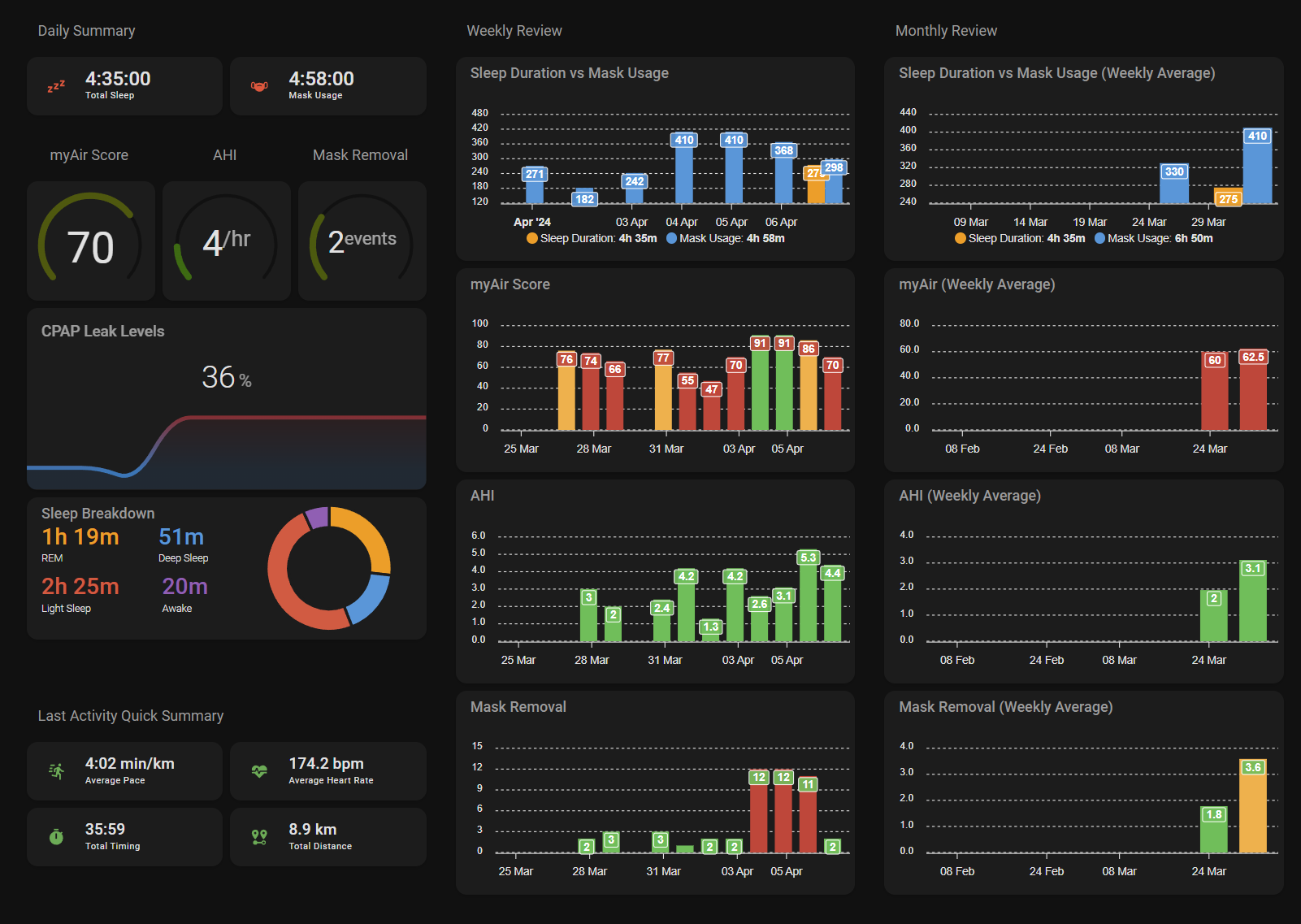 In Home Assistant you can make an unlimited amount of dashboards and make each one truly your own. PersonalJ took this by heart and created a very detailed dashboard to track his sleep apnea and insomnia.