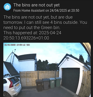 I can’t think of a better use for the cloud than to count bins. u/daern2 has written some logic to count bins with Gemini, and remind them to take them out and lock up.