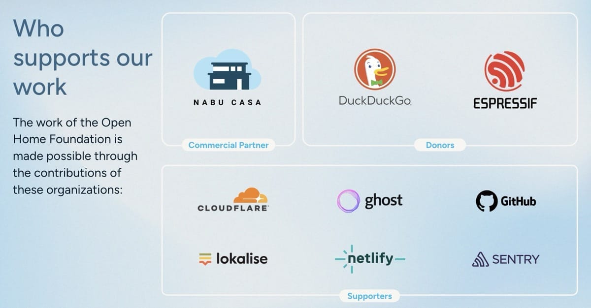 Speaking of donors, just recently, Espressif donated $25,000 to the Foundation. Espressif designs many of the chips that power ESPHome, along with many of your favorite smart home devices. Needless to say, we have a special relationship. They are supporting Open Home software development to help drive the DIY sensor and controller revolution forward. A big thanks goes to Espressif for their support.