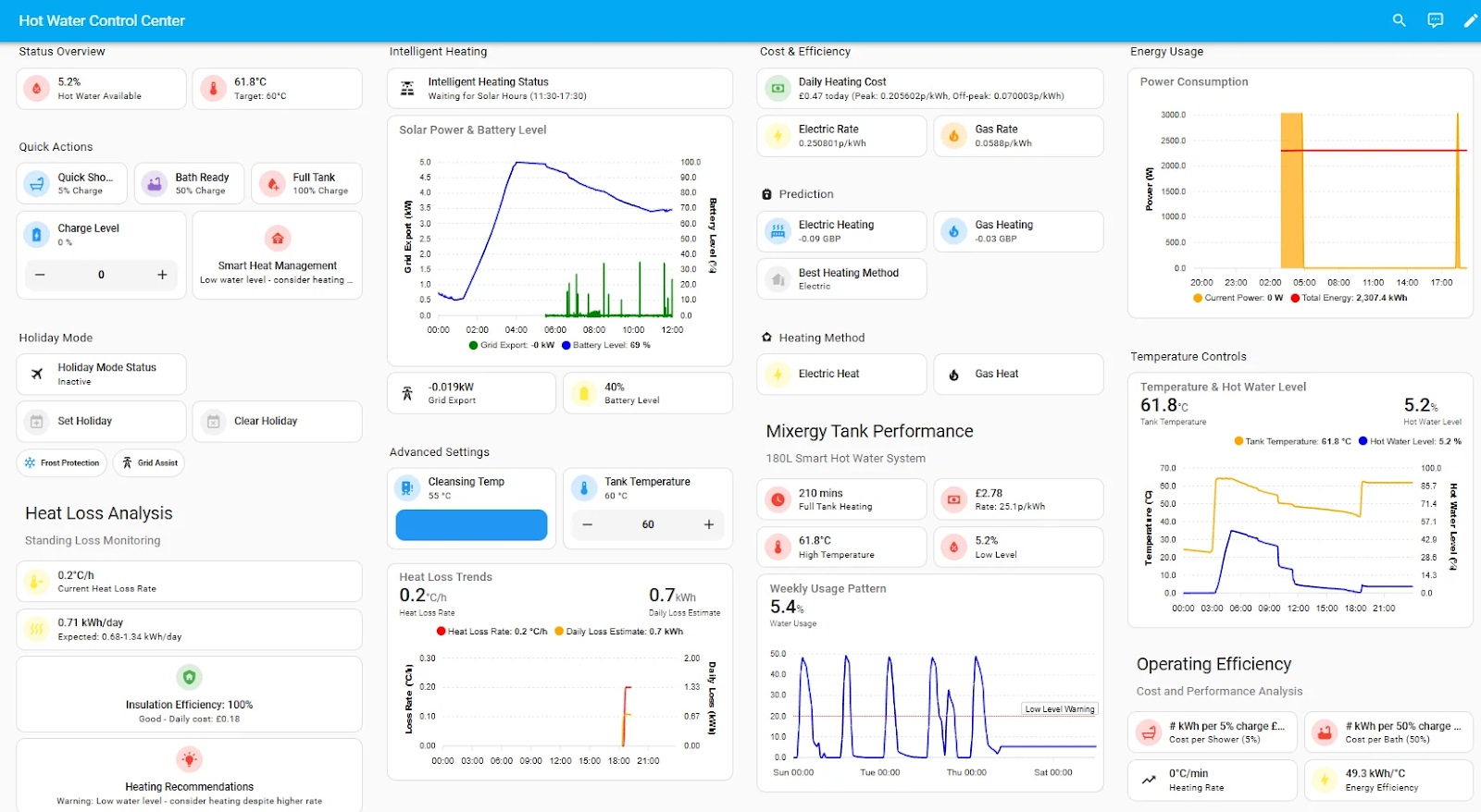 Here is a really detailed dashboard from u/ByzantiumIT for Smart hot water tank, and it can track everything from solar input to heat loss.