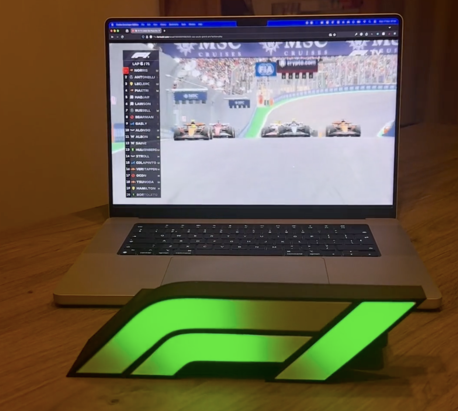 Fans of Formula 1 will love @joppedc’s dynamic F1 logo lightbox that changes colour according to race events. It only works with live races, so there’s plenty of time to build it before the next Grand Prix.