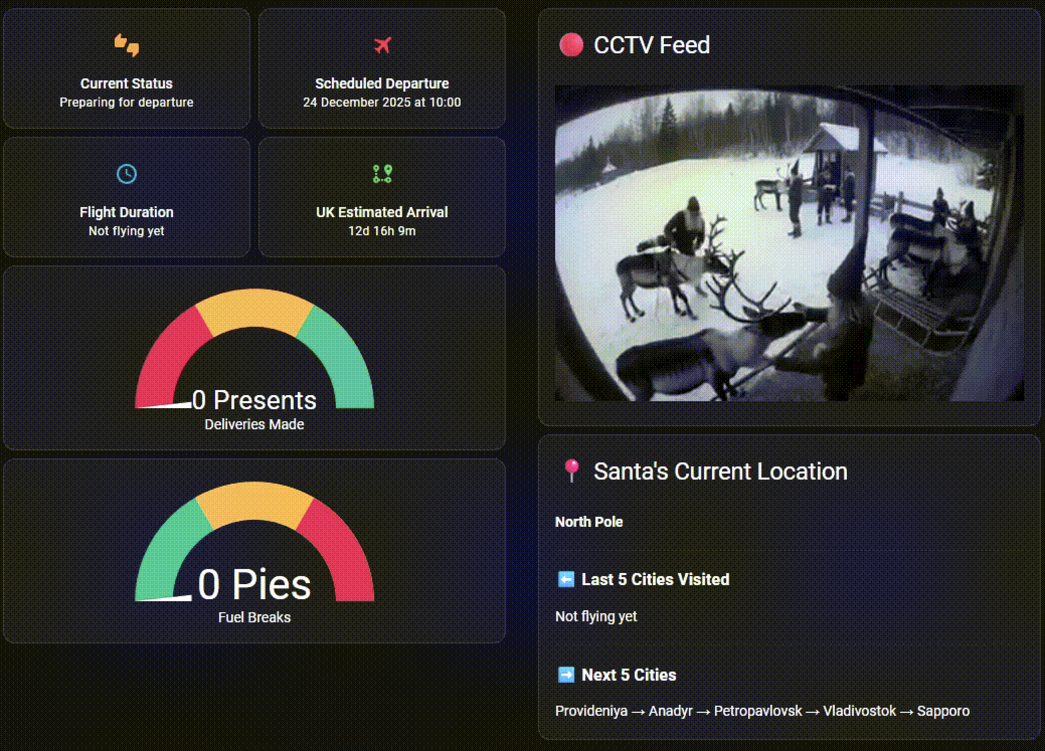 Keep tabs on Kris Kringle with @chrisefrost’s festive integration that follows Santa’s journey on Christmas Eve using the Google Santa Tracker API, complete with CCTV footage from the North Pole!