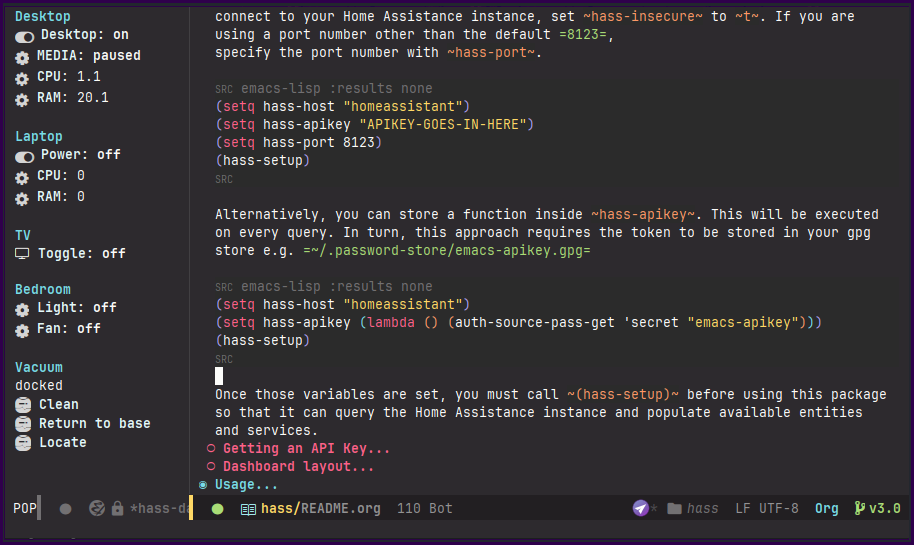 Control your Home Assistant directly from Emacs thanks to this plugin by Ben. Available on GitHub.