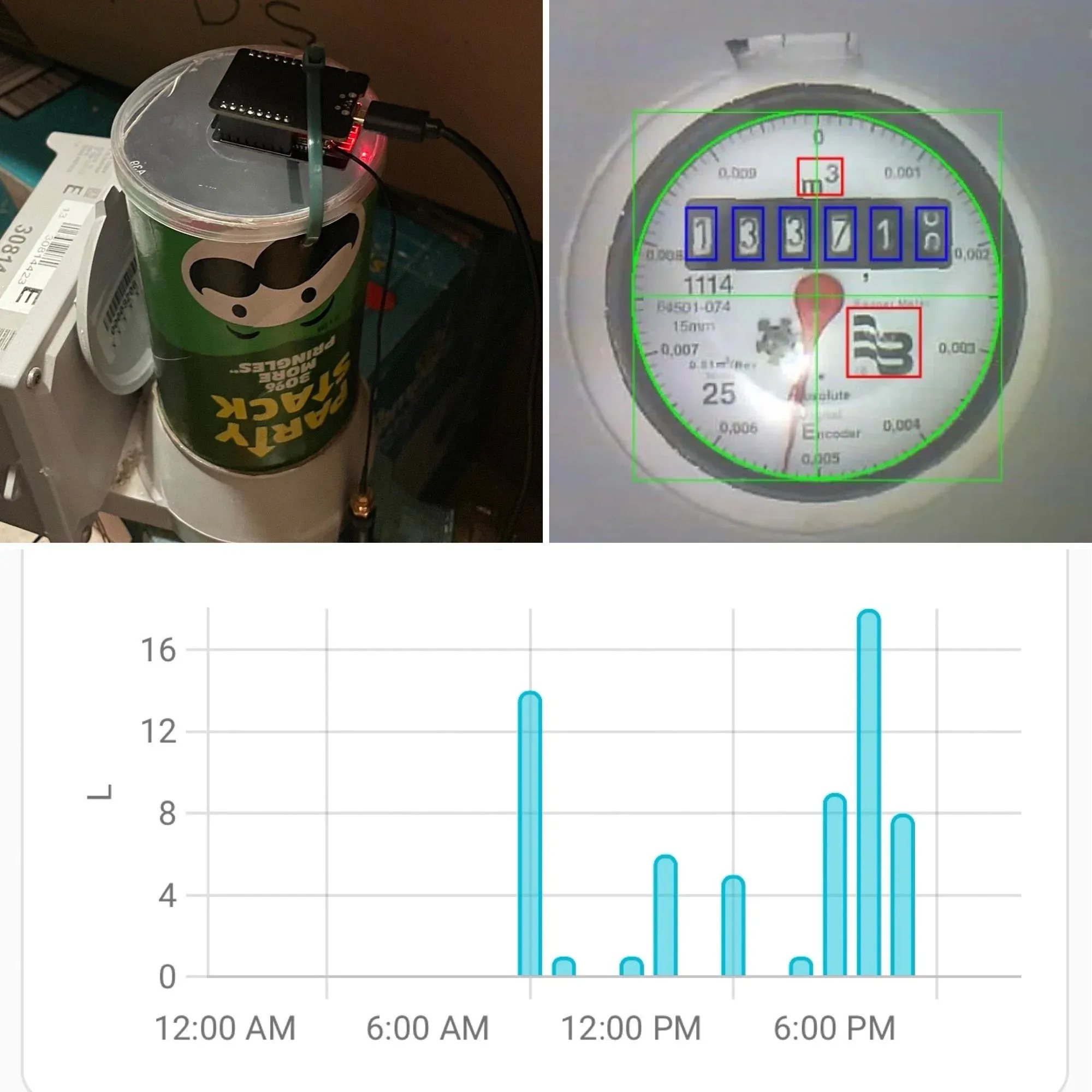 Using an ESP32, a camera, and an empty Pringles can - all cobbled together with the very impressive AI-on-the-edge-device project u/rastrillo built an analog meter reader that sends its readings to Home Assistant.