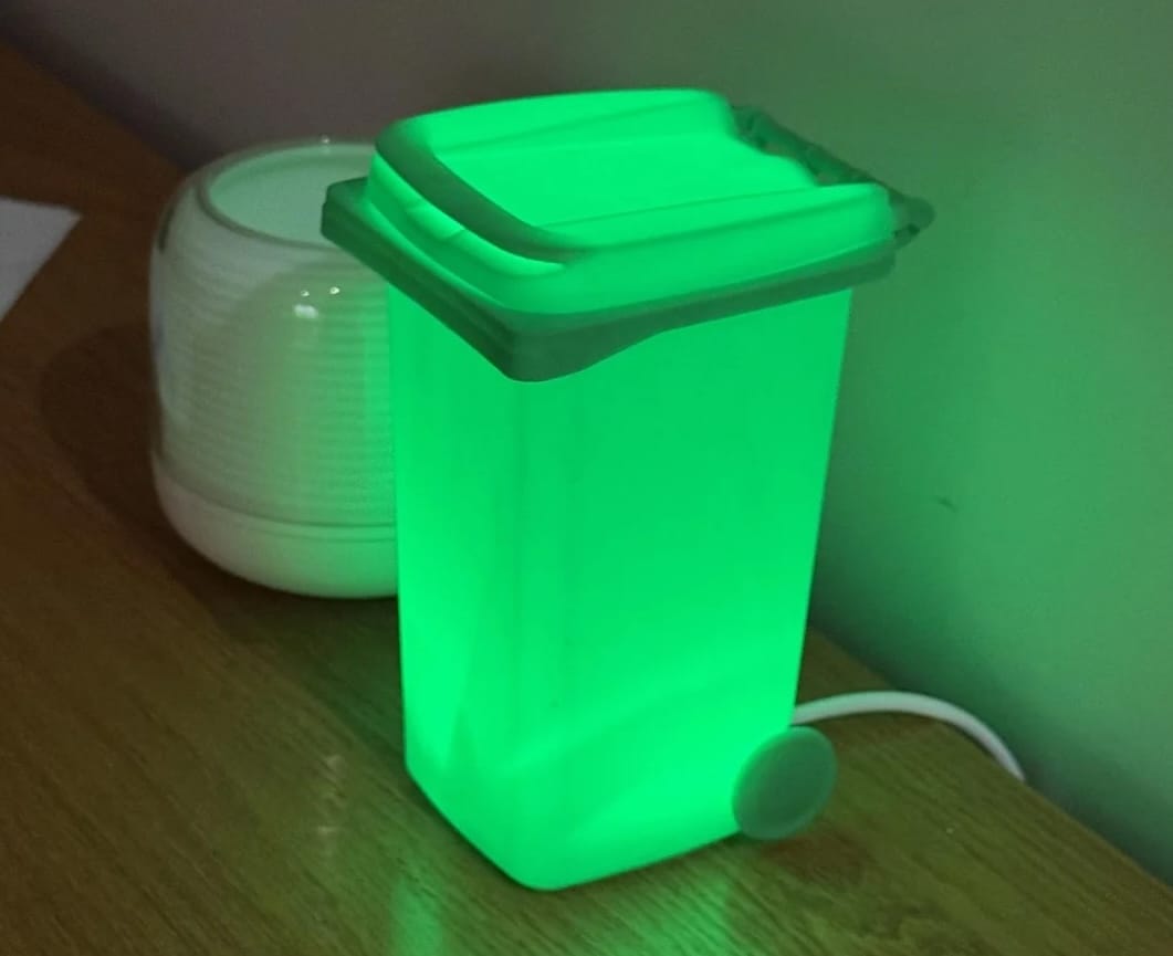 This is the reason to get a 3D printer, so you can make a little light-up garbage can. u/deanfourie1 has put an LED in it to remind them when it's recycling week.